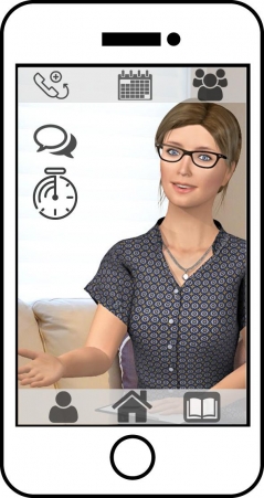 Wie geht es weiter nach einem Burnout, wenn die Therapie vorbei ist? Mit wem kann man reden? Virtuelle Figuren mit sozialen Fähigkeiten könnten helfen, wenn Therapieplätze knapp sind (siehe Abbildung; Gebhard, Schneeberger, Dietz, André, & Bajwa, 2019). Sie sind in der Lage, eine positive Beziehung zum menschlichen Gegenüber aufzubauen, indem sie sowohl nonverbale (Lächeln, Nicken, Mimikry) als auch verbale Techniken (Dialog, eigene Selbstoffenbarung) des aktiven Zuhörens umsetzen können. Gleichzeitig vermitteln sie ein Gefühl von Sicherheit und Anonymität.